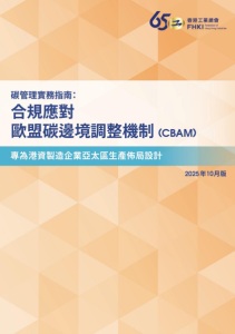歐盟CBAM指南 – 序言 3 序言 在全球產業格局重塑的關鍵時刻,碳管理已從企業選擇題轉變為必答題。亞太 地區碳交易市場的崛起,以及國際綠色投融資趨勢,都在深刻改變著製造業的 競爭規則。港資製造業憑藉在亞太地區幾十年的產業布局與創新能力,具備在 這一轉型浪潮中引領變革的潛力。 香港工業總會 (工總)多年來持續推動中小企應對環境挑戰。自2015 年起, 我們每年舉辦「中銀香港企業環保領先大獎」,表彰在可持續發展方面表現卓 越的企業,參賽企業數目逐年攀升,反映業界對環保議題的重視日益提高。 2021 年,我們成立了「環境、社會及管治委員會」,進一步整合資源,透過專 題研討會、工作坊及行業調查,提升會員對碳減排政策及措施的認識。去年, 我們透過香港優質標誌局推出「香港Q-Carbon認證計劃」及「香港Q-ESG認 證計劃」,為企業提供專業認證服務,協助中小企建立碳管理及ESG管理體系。 港資製造業已構建起以中國內地為核心、輻射東盟的完整產業鏈。在此背景下, 香港製造業應將碳管理視為提升國際競爭力的策略機遇。香港作為國際金融與 專業服務中心,擁有連接全球資本市場與綠色金融的獨特優勢,能為製造業綠 色轉型提供全方位支持。透過金融、科技與製造業的協同創新,香港有潛力成 為亞太地區綠色經濟發展的樞紐,推動區域碳中和進程。 我們深知中小企在理解和遵守複雜的碳法規方面常面臨重大挑戰,尤其當面對 全球多元市場時。是次推出兩冊《碳管理實務指南》將國際標準、歐盟 CBAM 法規與港資製造企業實際需求相結合,通過將複雜要求分解為清晰可行的步驟, 輔以實際案例和行業見解,賦予中小企必要的知識,使其能夠平穩過渡至低碳 營運,同時保持效率與競爭力。我們深信,在區域綠色轉型的趨勢下,率先建 立科學、系統化的碳管理體系,將能贏得市場先機,鞏固香港製造業在全球價 值鏈中的戰略地位。
